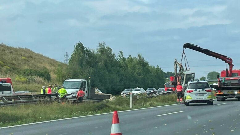 Færdselsuheld giver lang kø på Holbæk-motorvej: Flere vognbaner spærret