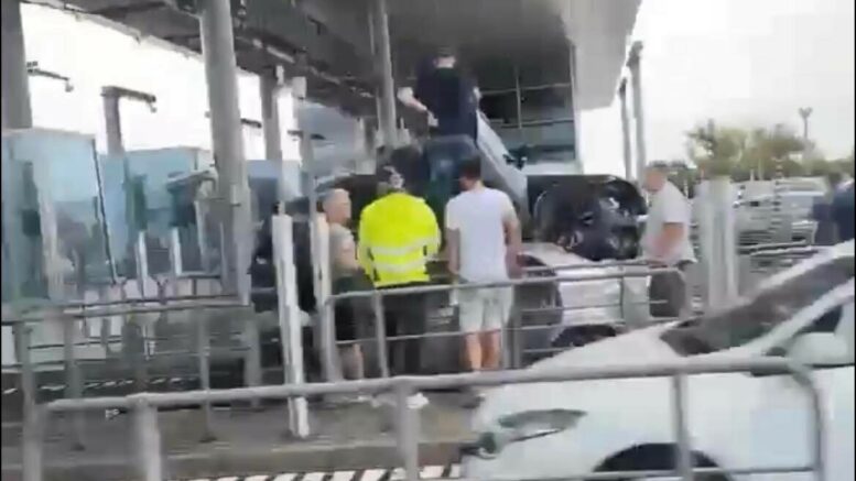 Video: Bil-uheld ødelægger betalingsanlæg på bro – helikopter tilkaldt