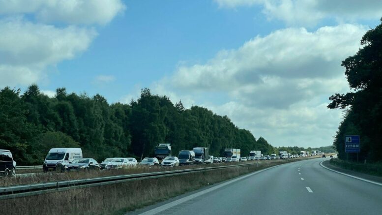 Lastbil spærrer til motorvej: Kan give kø