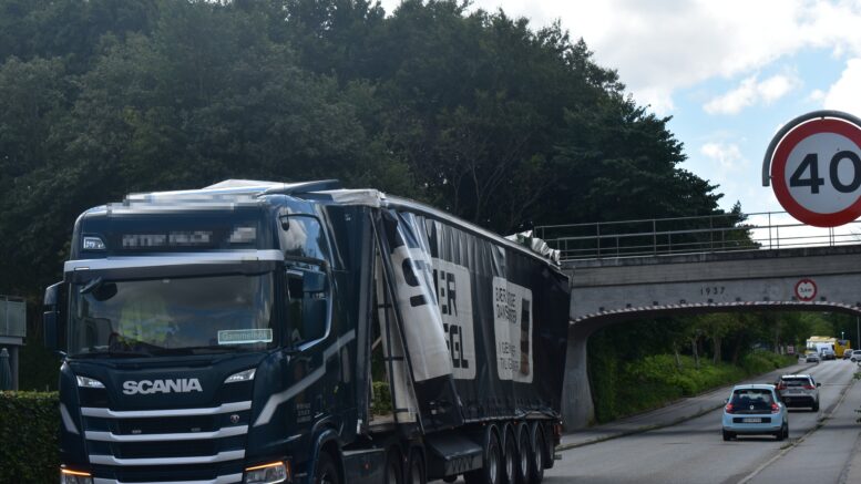 Lastbil for høj: Kørte ind i bro