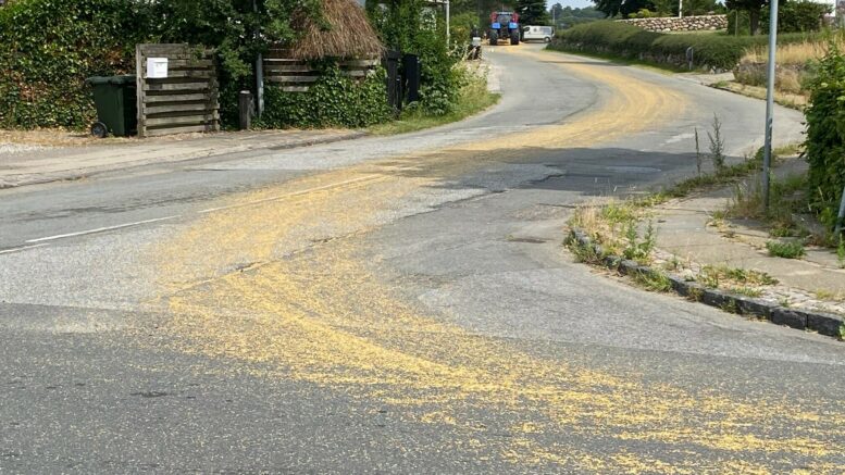 Se billederne: Traktor tabte korn over 1,5 kilometer