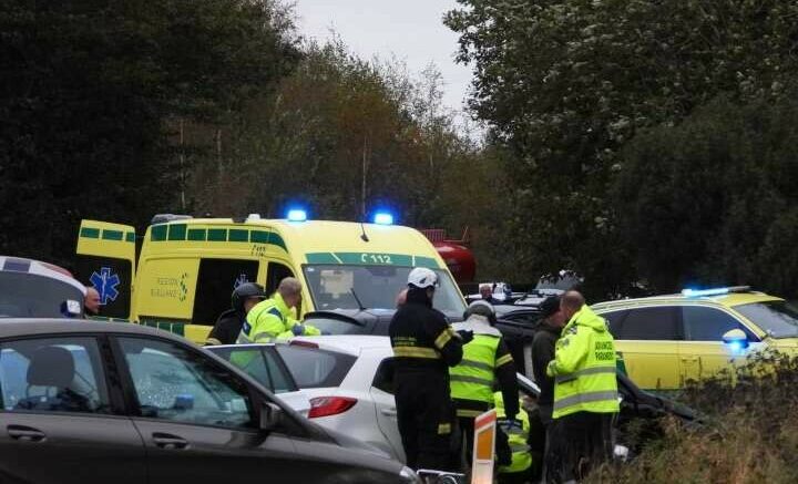 Færdselsuheld skaber kaos: Tre personer på hospitalet