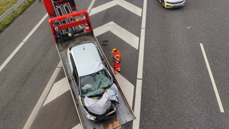 Traktor og bil stødt sammen: Motorvejen er HELT spærret