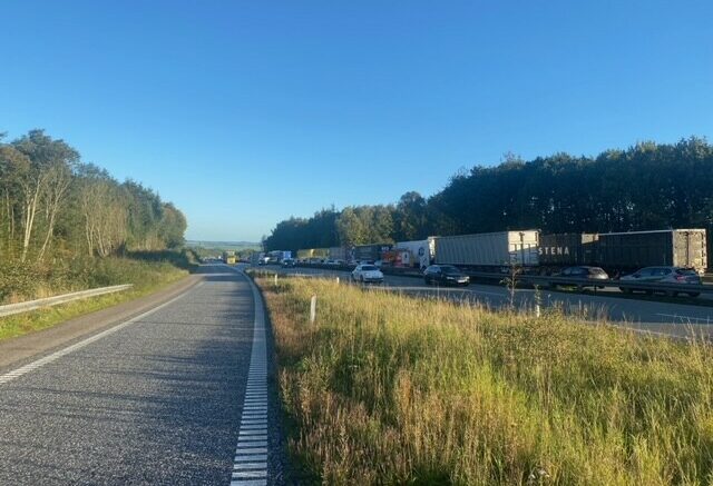 Lastbil kørt ind i autoværn på motorvej: Der er HELT spærret!