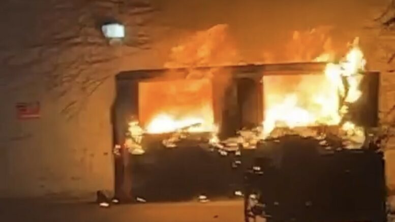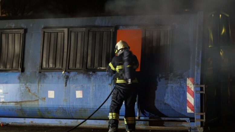 Brand i tøjcontainer antændt af fyrværkeri