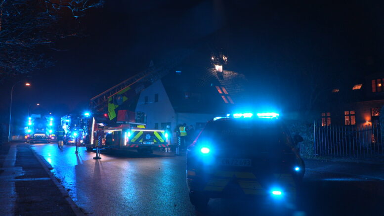 Drone i luften over villavej: Stor udrykning til brand i hus
