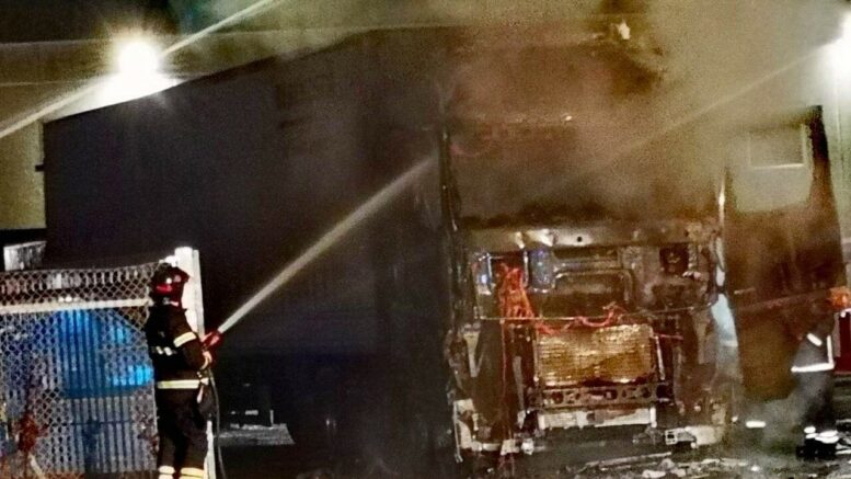 Kraftig brand i lastbil