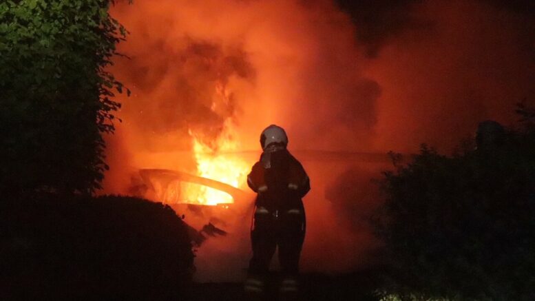Kraftig brand i carport og 3 biler