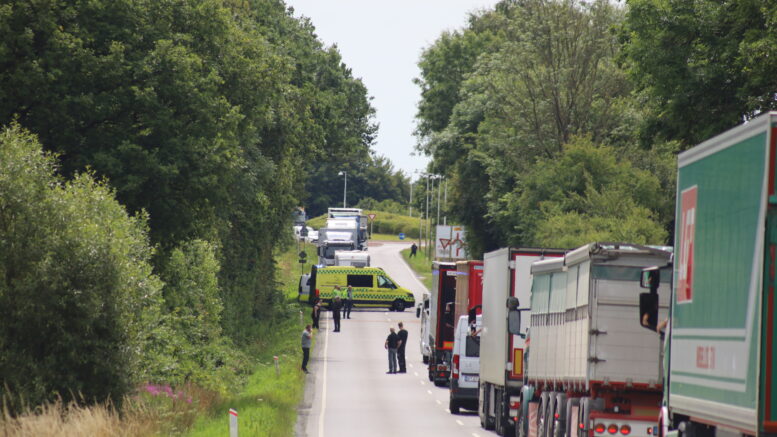 Motorvejsspor spærret: Svinetransport med 600 grise væltet