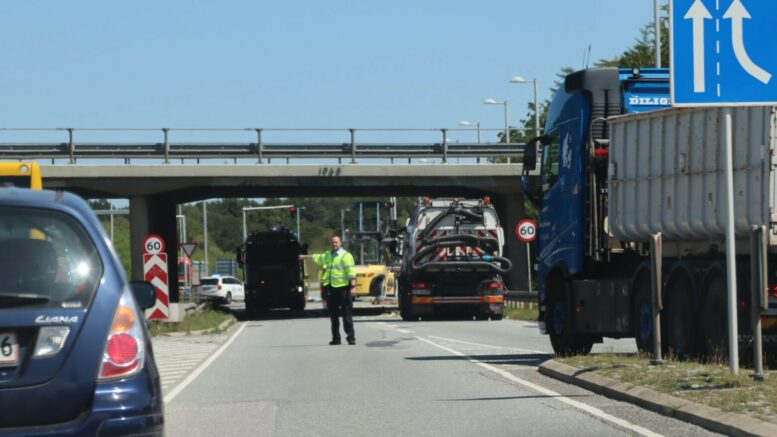 Randers: Påkørsel af motorvejsbro skabte køer