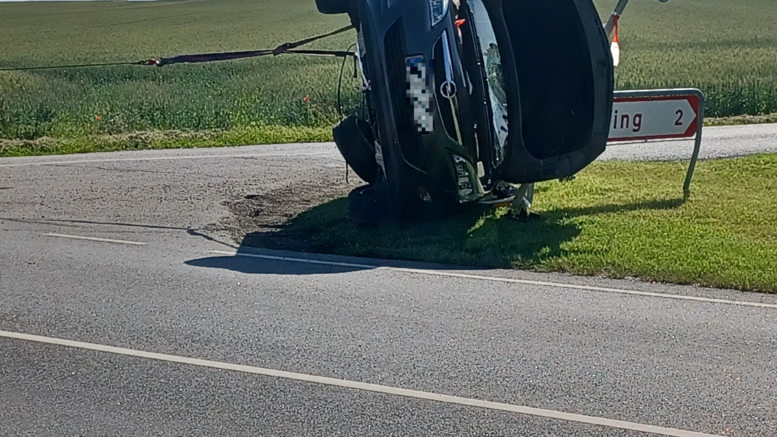 Bil endte på siden efter sammenstød