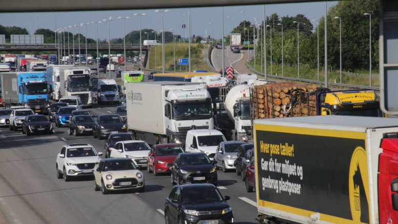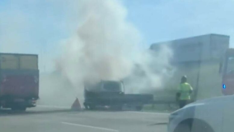 Bilbrand på motorvej spærrer spor