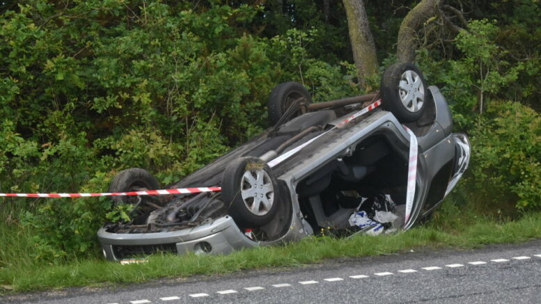 Soloulykke i Tarm – bil landet på taget