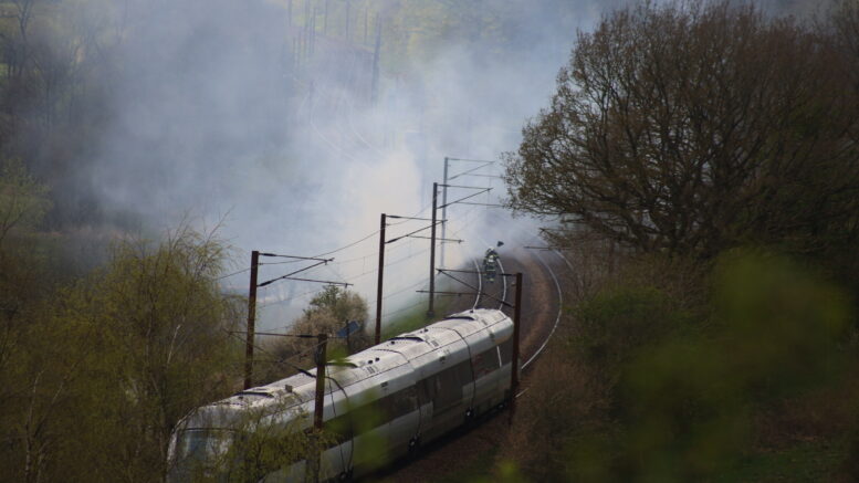 Naturbrand langs togbane indstiller togtrafikken