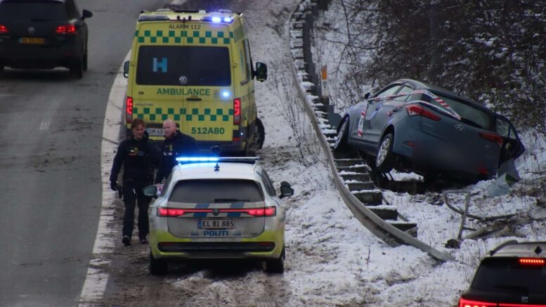 Voldsomme scener: Bil kører over for rødt og rammer lastbil