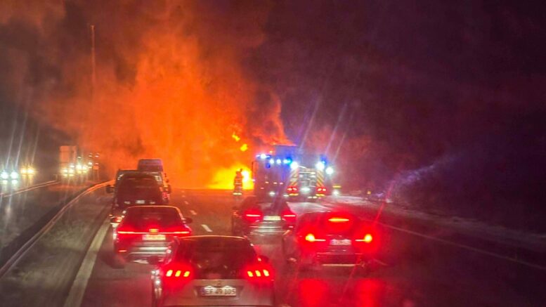 Lastbil i brand på motorvej: ‘Over 15 kilometer lang kø’