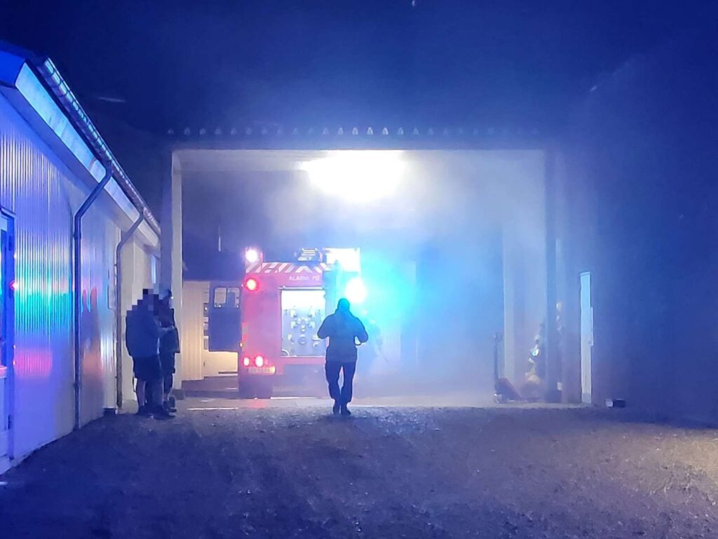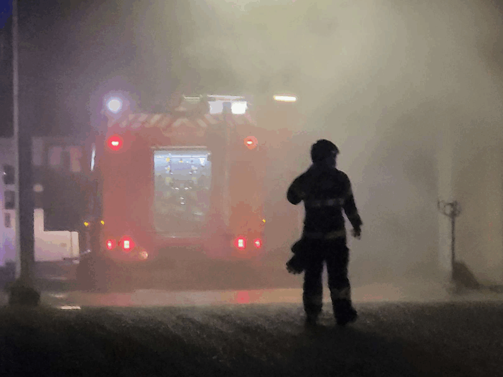 Røg fylder området, mens sirenerne hyler