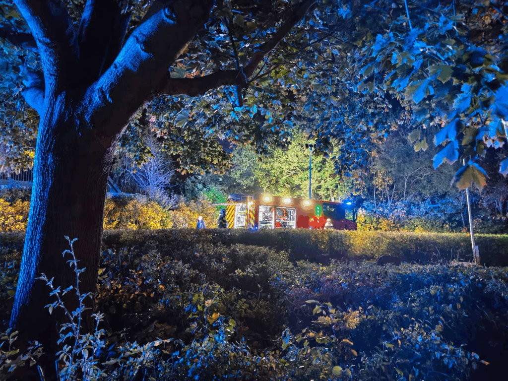 Videomateriale fra stedet viser, at flere brandslanger er blevet udrullet, mens brandfolk befinder sig på begge sider af hækken ved en privat grund.