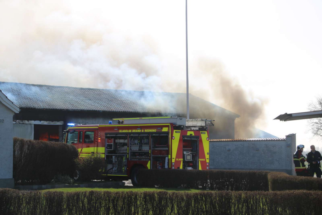 Lige nu ankommer flere og flere vogne til Frølundvej i Korsør, hvor den store brand er i gang.