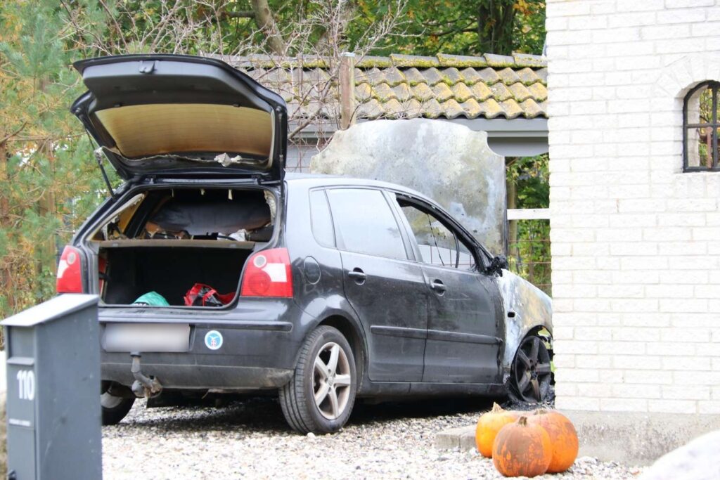På adressen er der øjensynligt ikke sket brandskader på andet end bilen.
