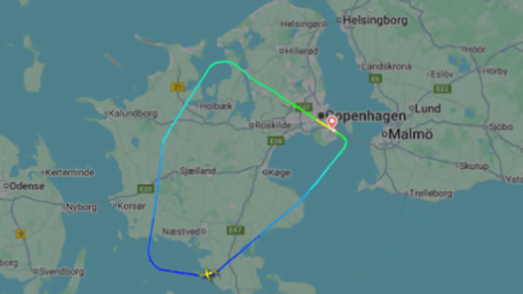 På flysporingstjenesten Flightradar fremgår det, at flyet efter at være lettet nåede til Sydsjælland, før problemer ombord opstod, så det måtte vende om og lande i København igen.