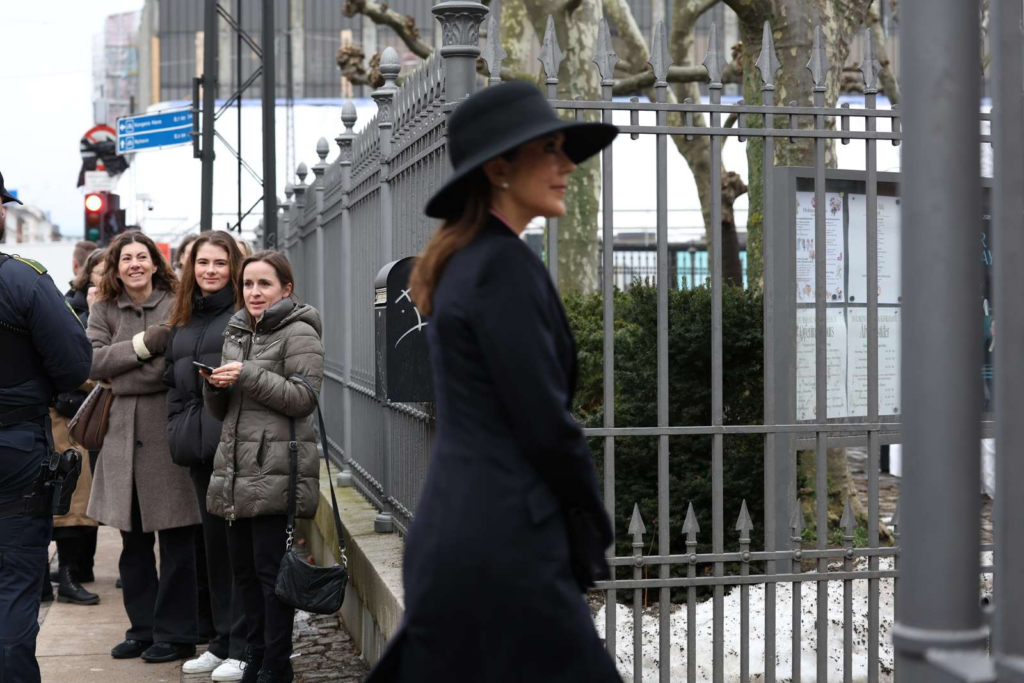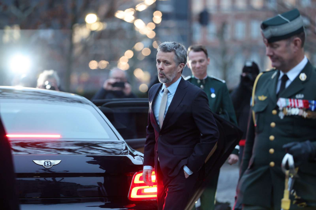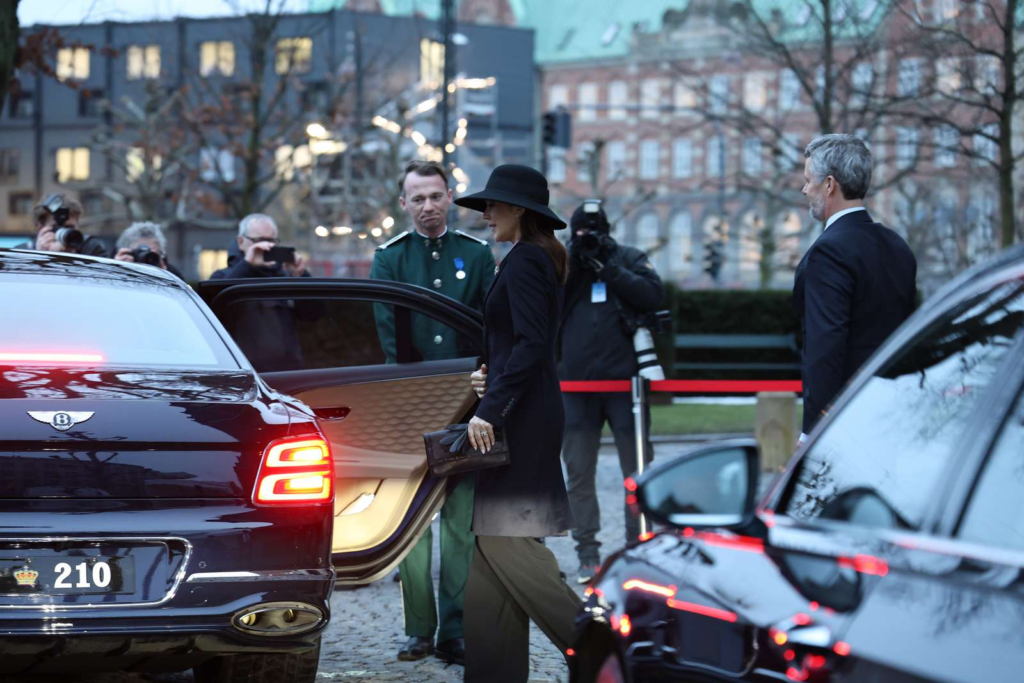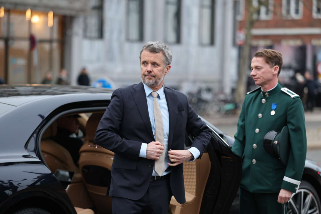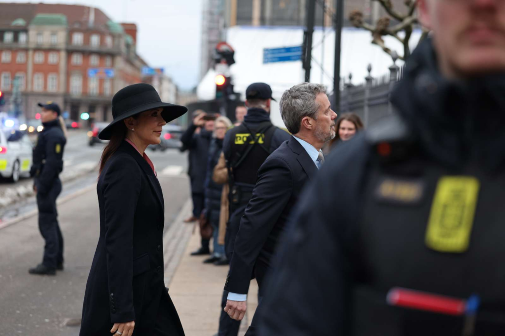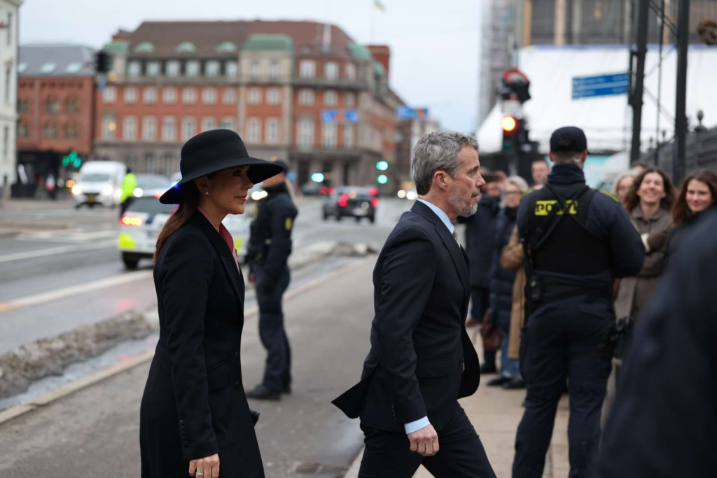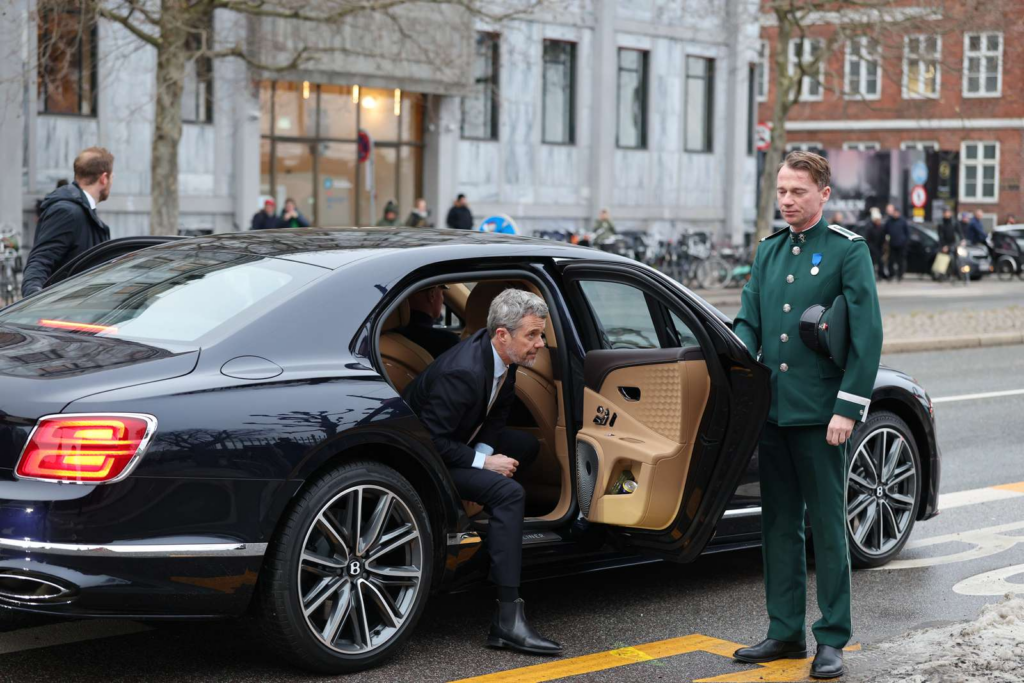 Klædt i sort og eskorteret af politi- og forsvarsfolk ankom Kong Frederik og Dronning Mary til kirken i den Bentley Mulsanne, som Kongen ifølge Billed-Bladet overtog fra Dronning Margrethe i 2024.