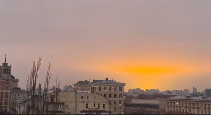 En krydsermissil slår ned i Kyiv og giver et orange skær