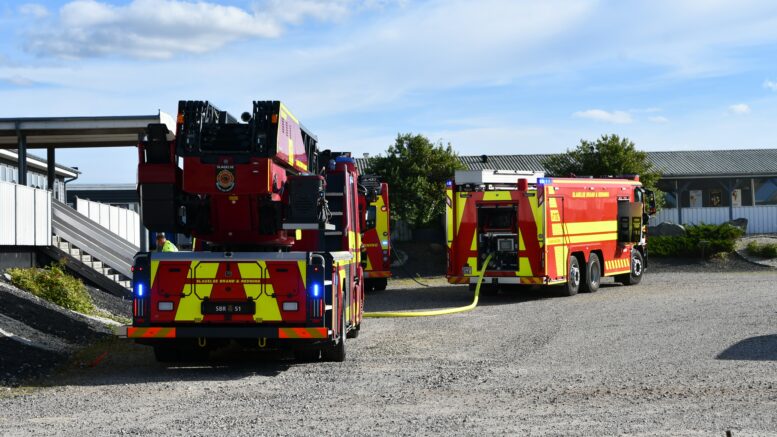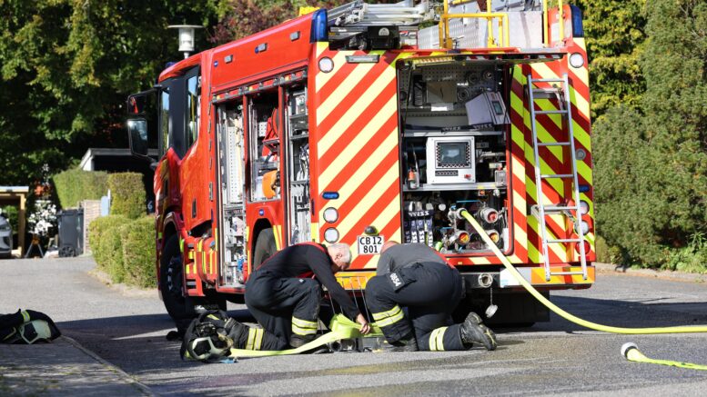 Brandvæsenet rykker ud med stige og sprøjte: Brand i lejlighed
