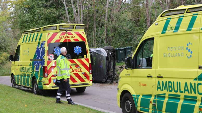 Bil ligger på siden efter voldsom ulykke: ‘De skal skæres ud’
