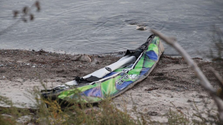 Livløs mand i oppustelig kajak