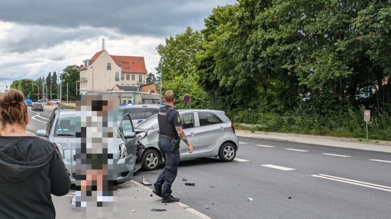 Uheld ved Circle K: Smadret bil står midt på kørebanen