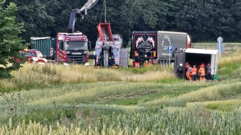Væltet lastbil spærrer motorvej i flere timer