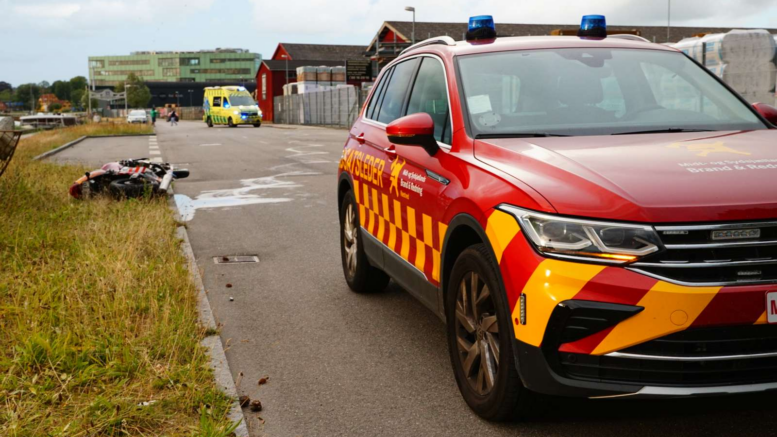 Motorcyklist brager ind i bygning: Hastet på hospitalet