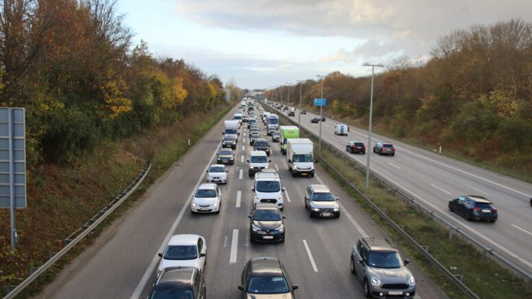 I forvejen ekstra kø: Nu slukker en strandet lastbil trafikken helt