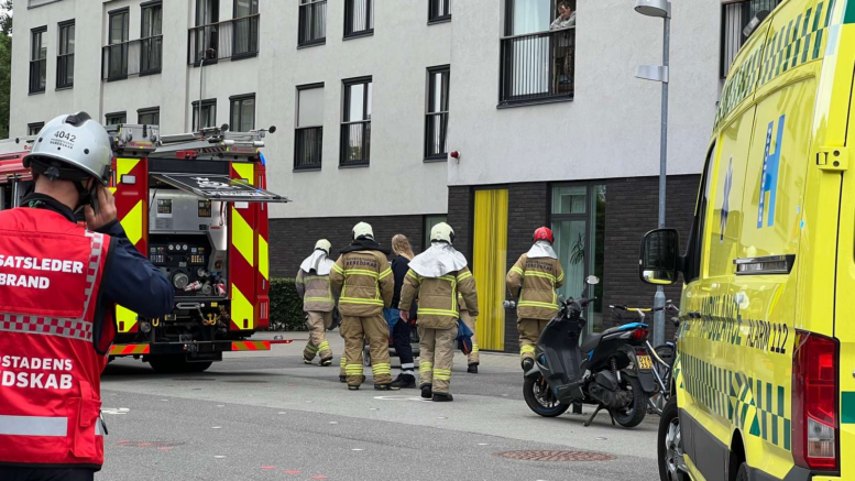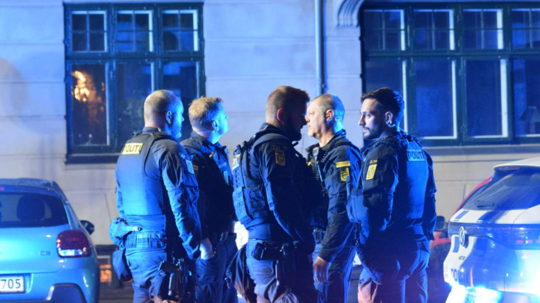 Boligkvarter lyst op af blå blink: Boligblok spærret af