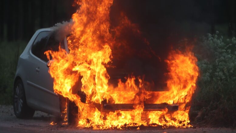 Meterhøje flammer fra bil