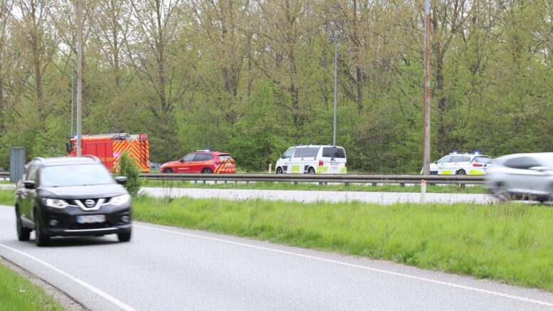 Bil med trailer vælter på motorvej