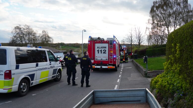 Redningsmandskabet spærrer villavej: Ambulance ankommet