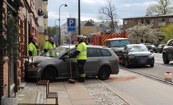 Bil brager ind i butik: Står midt på fortov og cykelsti