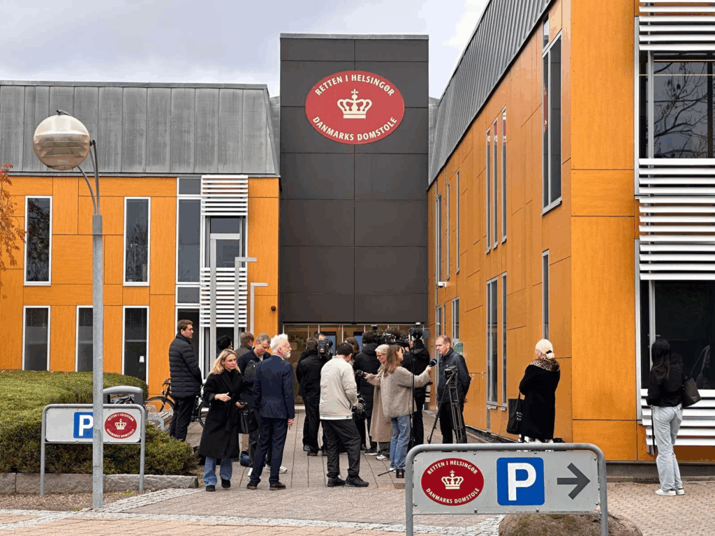 Presse og andre til stede foran Retten i Helsingør inden domsafsigelse