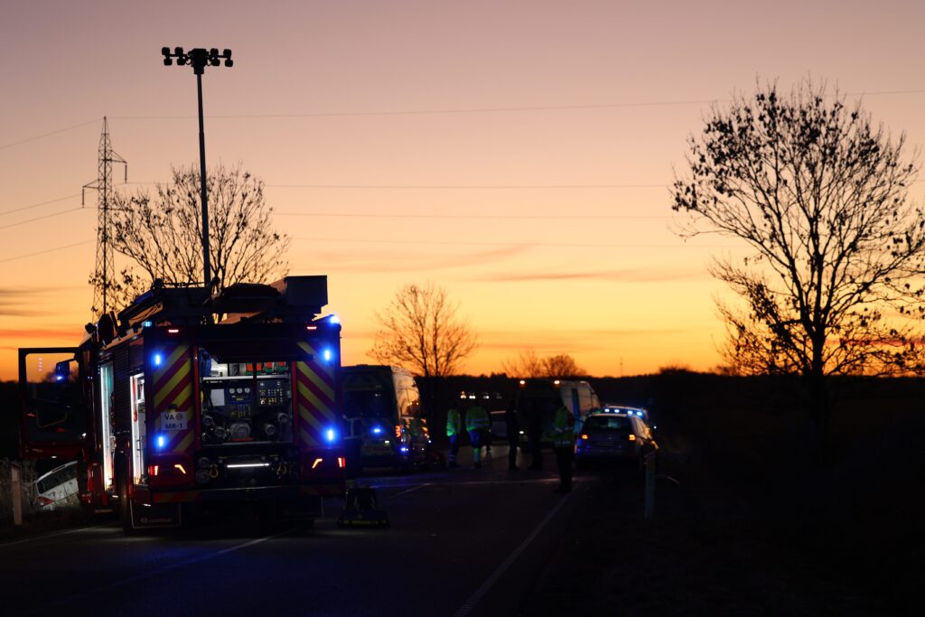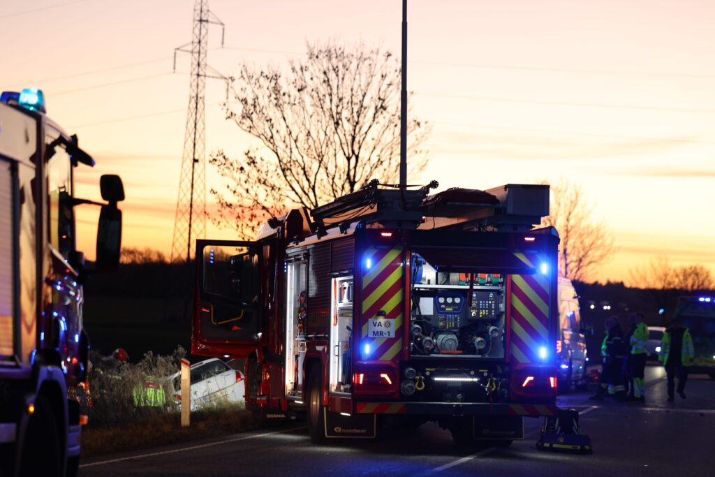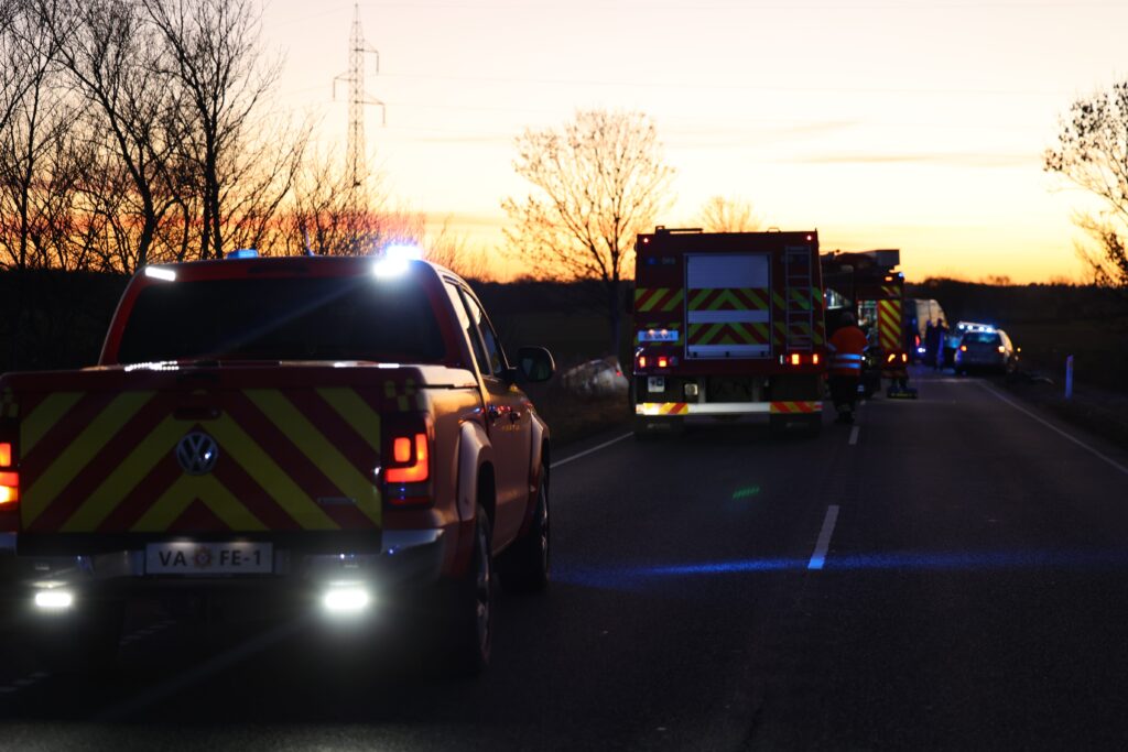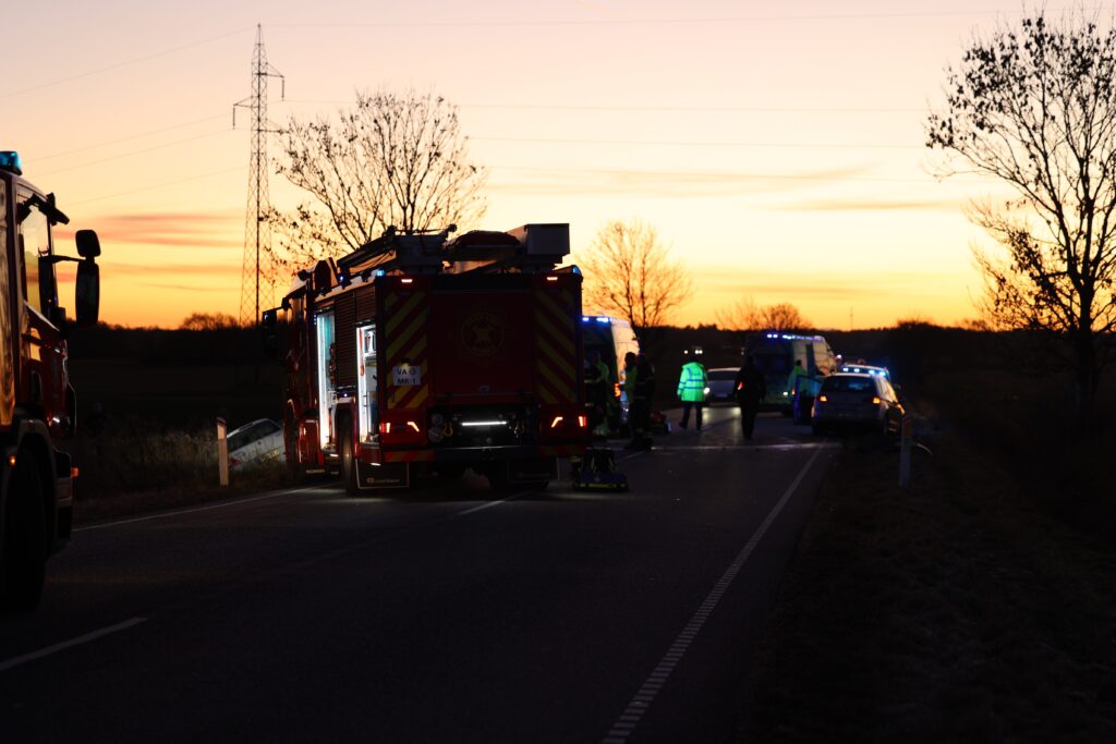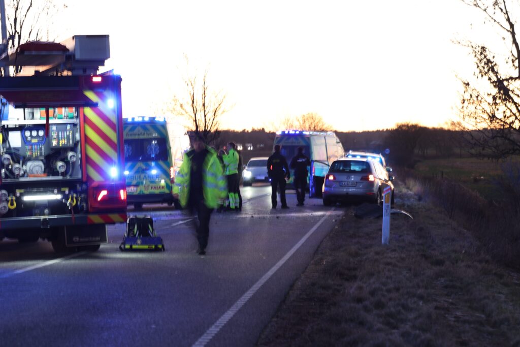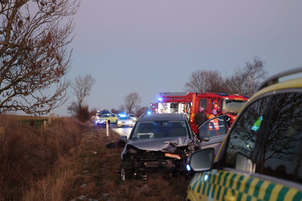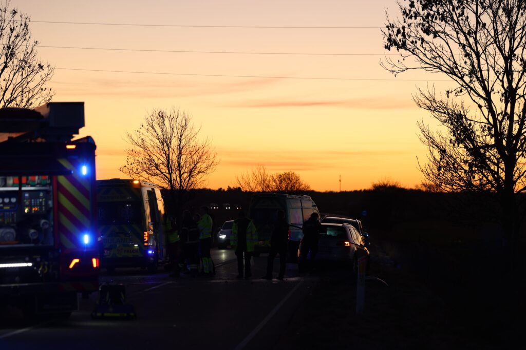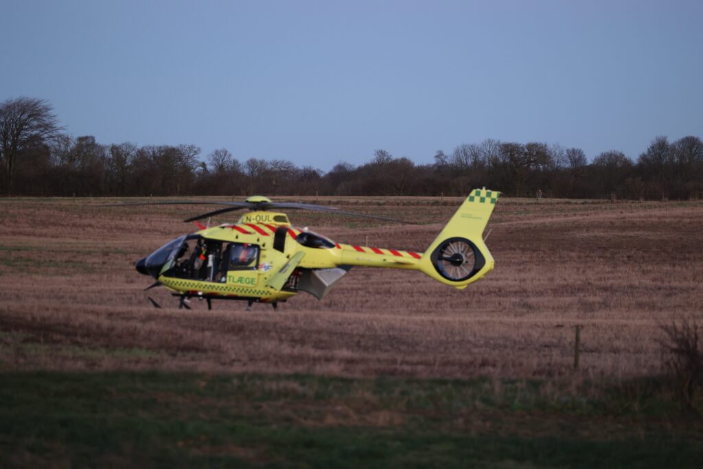 Ulykkens alvorlighed understreges ved, at en lægehelikopter er landet på en mark nær ulykkesstedet.