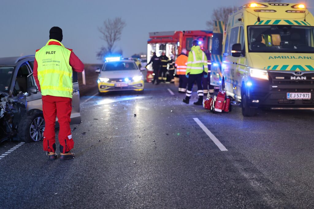 Tirsdag eftermiddag er politi, ambulance, beredskab og en lægehelikopter rykket ud til en alvorlig ulykke, hvor flere biler er impliceret. Presse-fotos.dk er også til stede, og redaktionens udsendte kan berette om meget alvorlige scener.