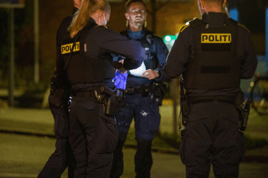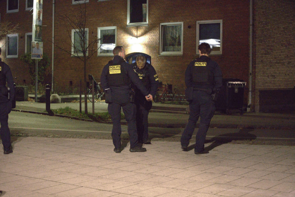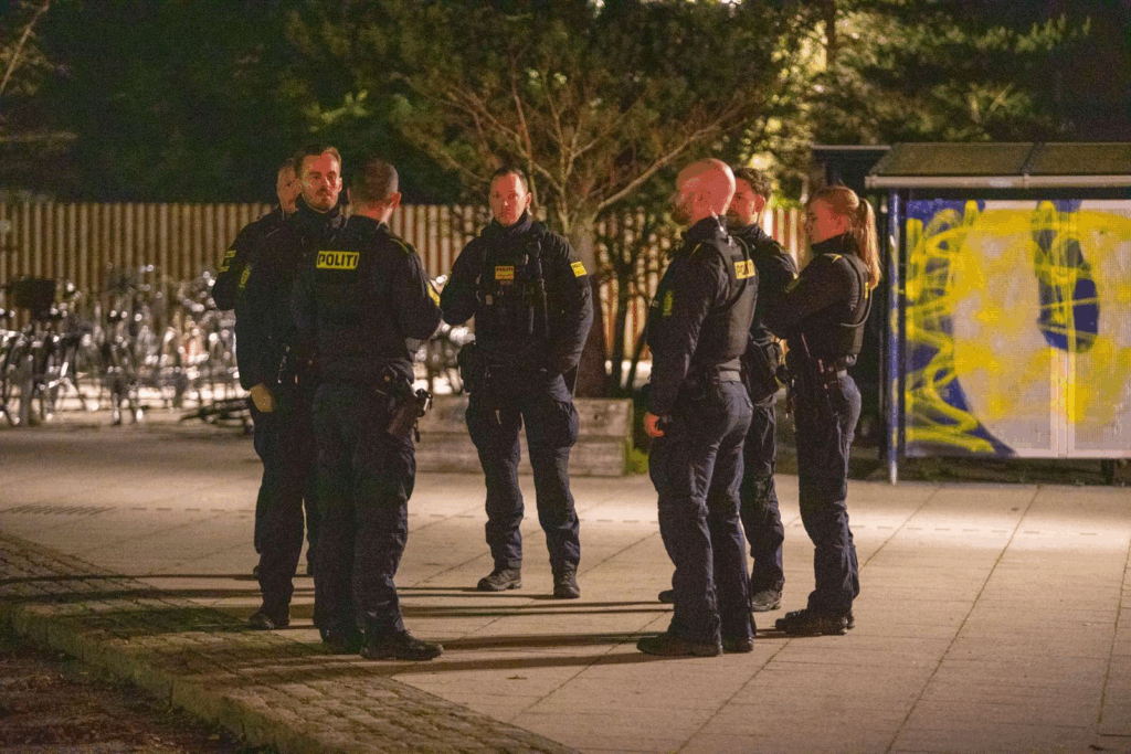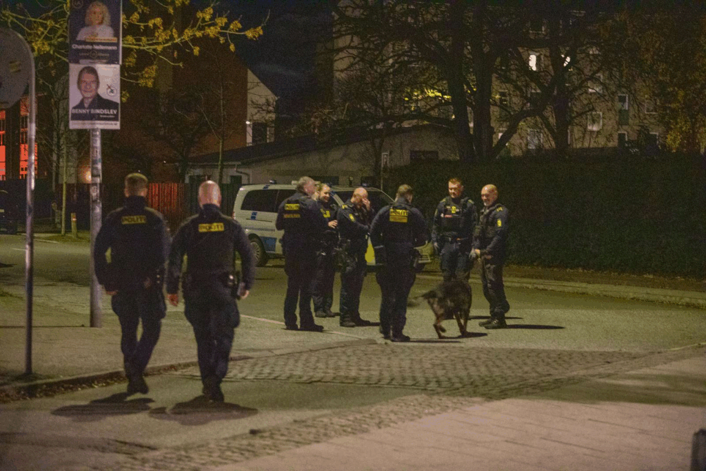 ’Vi fik en anmeldelse klokken 23.24 om, at der skulle være skyderi i området, og vi har været derude for at undersøge forholdet,’ fortæller vagtchef Dyre Sønnichsen fra Københavns Politi til Presse-fotos.dk.
