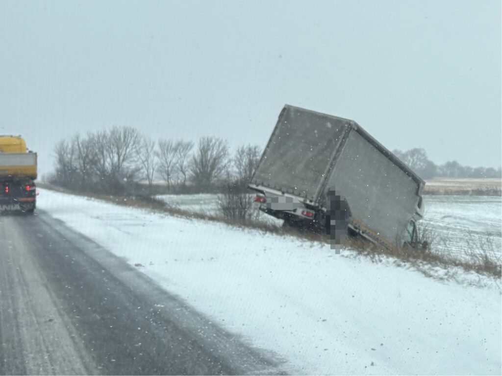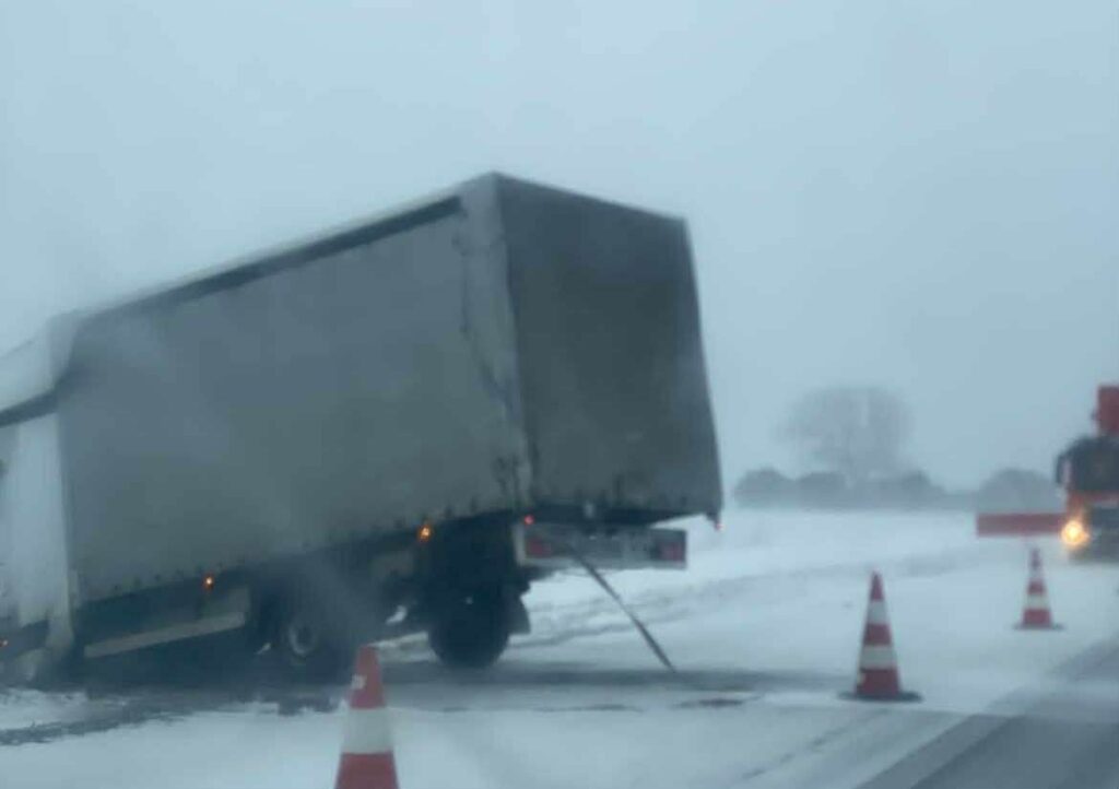 Uheldet er sket midt i snevejret, og trafikken passerer området med nedsat hastighed. Det er uklart, hvordan uheldet er sket, og der er på nuværende tidspunkt ingen meldinger om personskade.