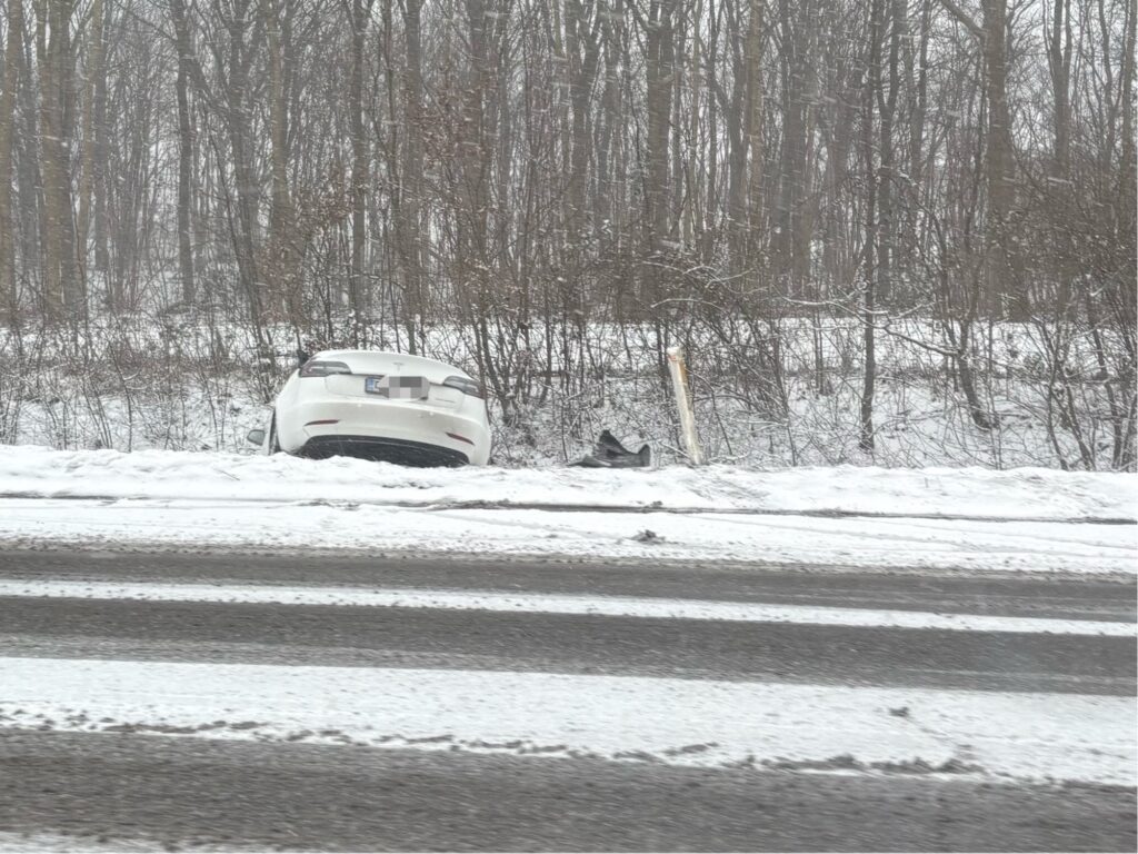 Et tredje uheld giver samtidig problemer på E45 Sønderjyske Motorvej i nordgående retning ved sammenfletningen ved Kolding. Her er to biler kørt galt i snevejret, og den ene er en Tesla, som er endt ude i rabatten.