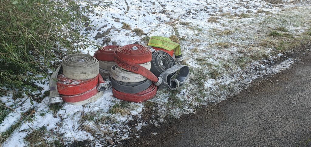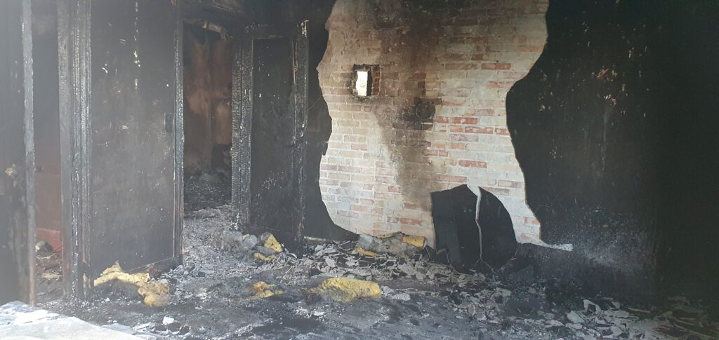 Kun de sørgelige rester står tilbage af et hus, der i nat blev ramt af en kraftig brand.