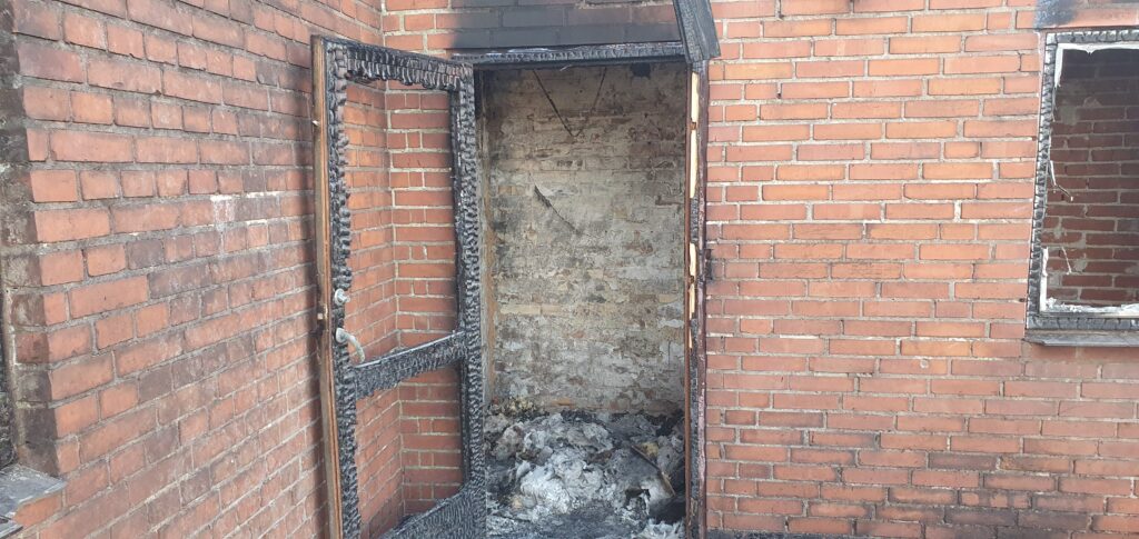 Søndag formiddag er huset særdeles medtaget, og der hul hele vejen igennem taget flere steder.