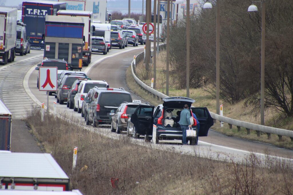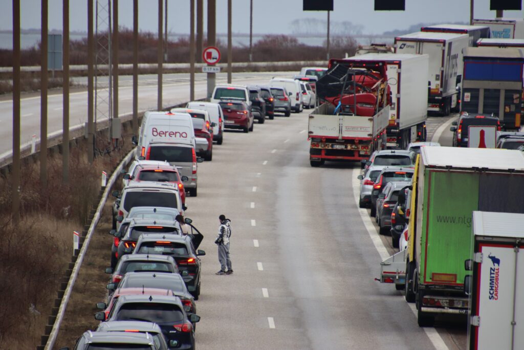 Ifølge Presse-fotos.dks udsendte er folk begyndt at stige ud af deres biler, mens de venter på, at vejen igen åbner.