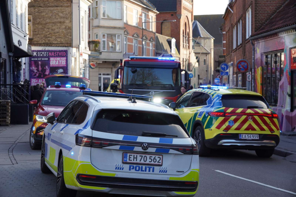Indsatsen fandt sted på Grønnegade i Næstved, hvor gaden i en periode var afspærret af udrykningskøretøjer.