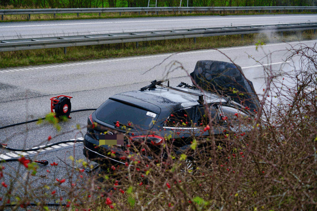 Derfor er brandvæsenet og politiet rykket hurtigt ud til hændelsen. Ved udrykningskøretøjernes ankomst kunne det konstateres, at en bil nu holdt i nødsporet og var gået i brand.
